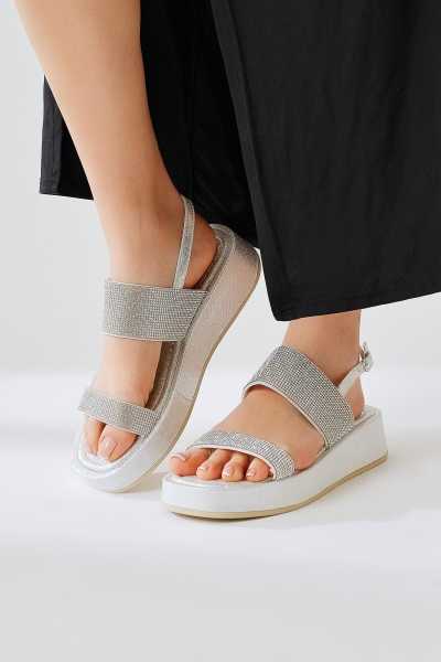 Ellie Şeffaf Hasır Bantlı Kadın Dolgu Topuklu Ayakkabı