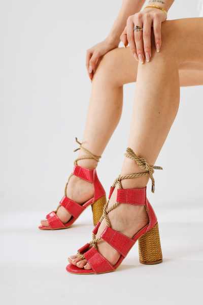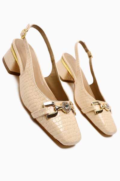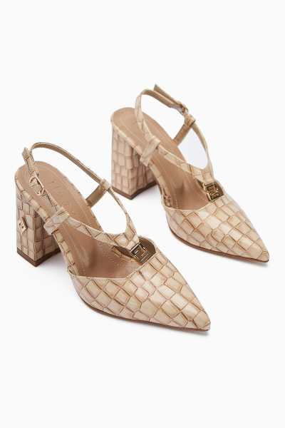 Marilyn Nud Kroko Dolgu Topuklu Sandalet