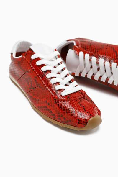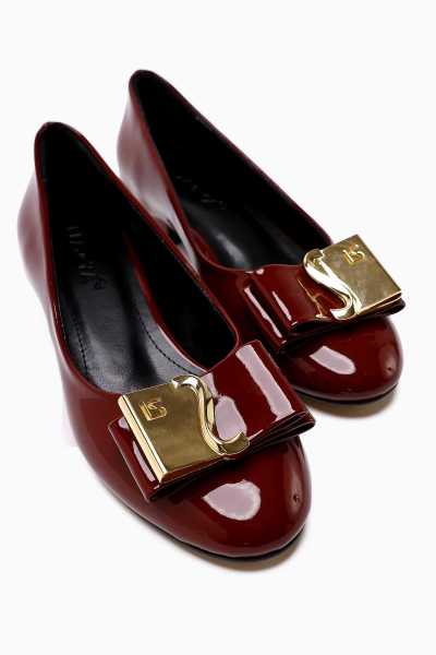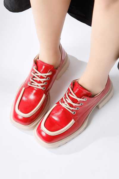 Anjela Hakiki Deri Kırmızı Fiyonk Detaylı Kadın Babet Ayakkabı