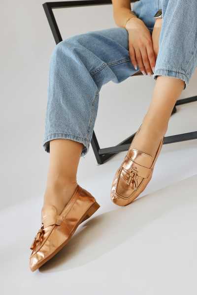 Alessa Hakiki Deri Rose Tokalı Loafer Kadın Günlük Makosen Ayakkabı