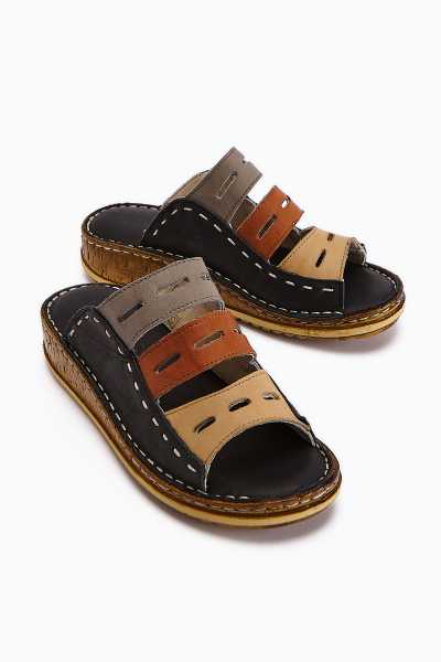Hakiki Deri Etta Kahve Lacivert Hardal Lazer Kesim Terlik (Tam Ortapedik Terlik)