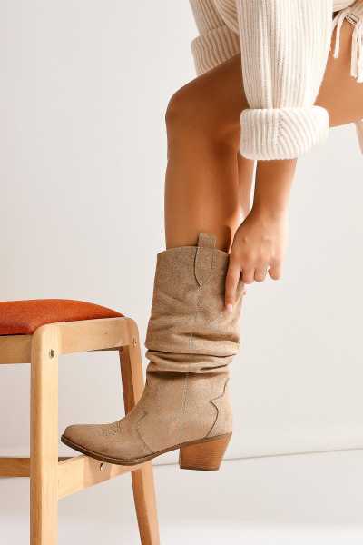 Aria Bej Topuklu Kadın Çizme